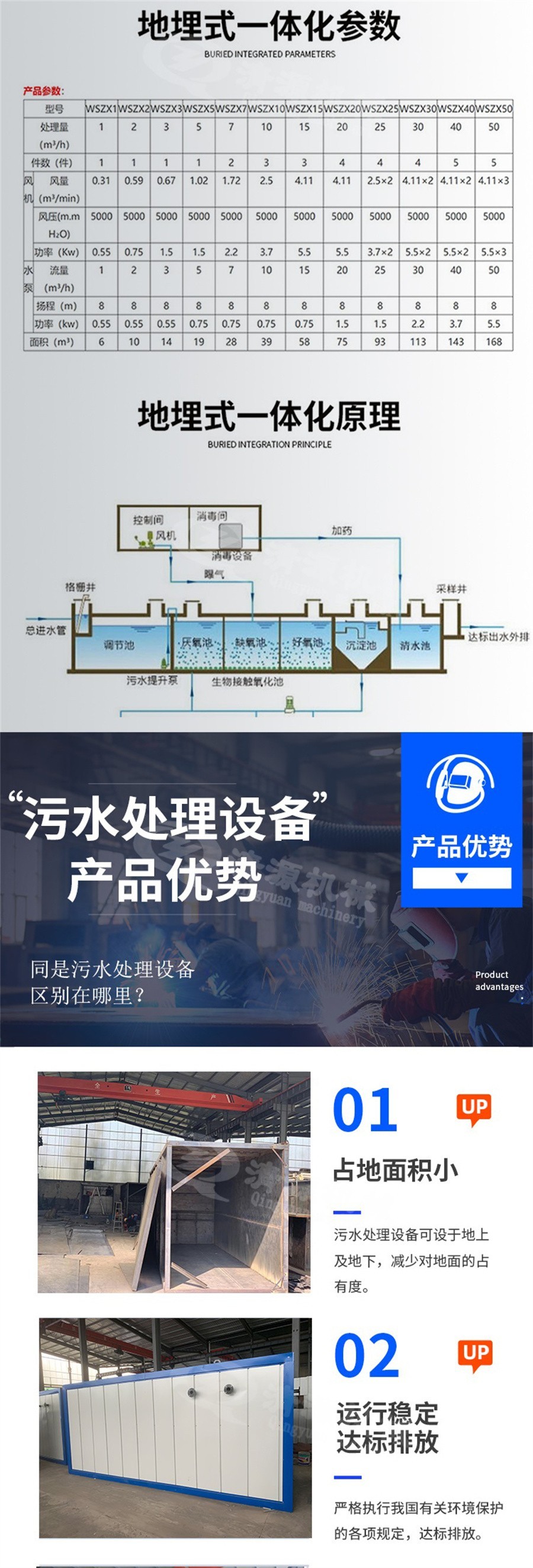 此装置一般埋设于地表之下,运用二次生物接触氧化处理工艺,它处理的效果超越全混合生物氧化池,对水质的适应性强度高,保证了水处理的稳定性。该设备在池中采用了新型弹性立体填料,对污水中的有机物质具有去除的功能。该设备通过氧化处理之后,产生的污泥量较少,仅需90天排放一次即可。为了避免放生菌类滋生、传播的现象发生,必须对水质进行深度消的毒处理。