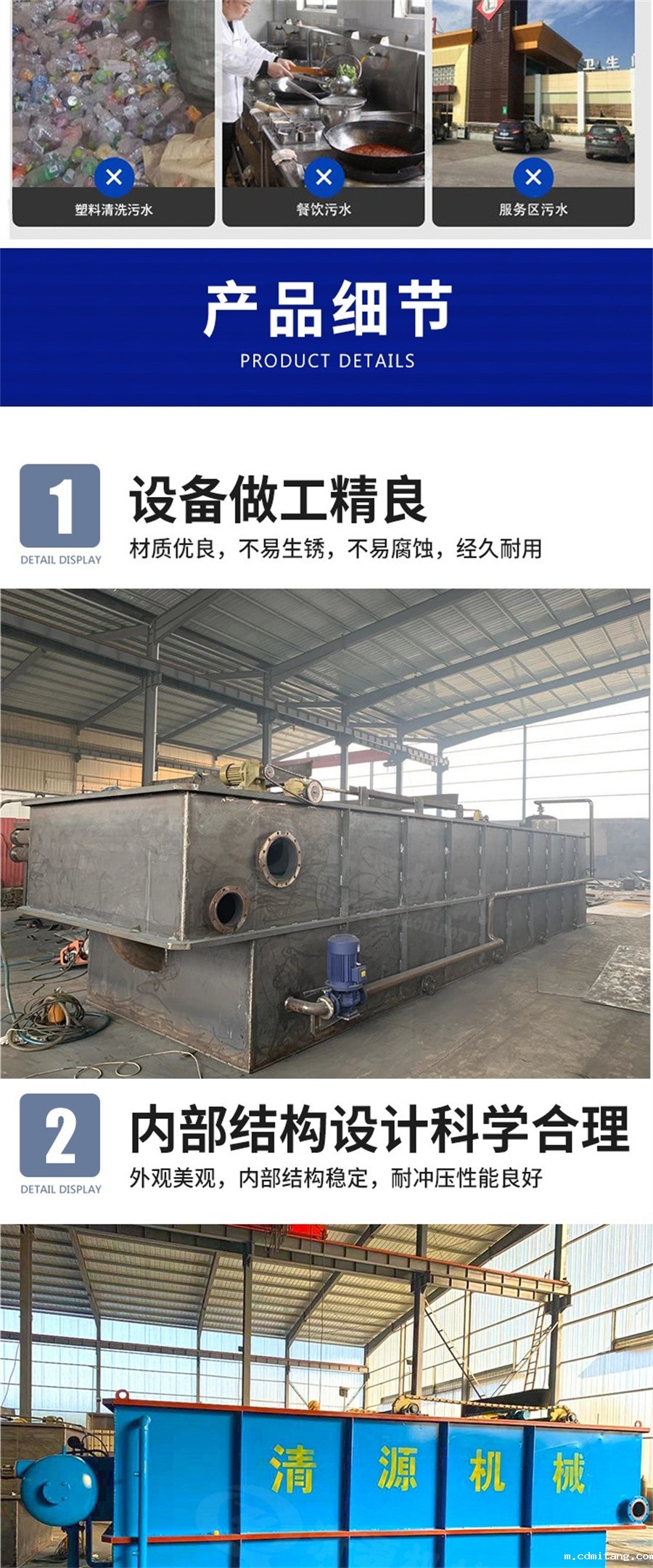 气浮过滤一体机主要适用于处理废水经反应后絮体比重接近于水的各类废水,气浮过滤一体机广泛应用于机械、化工、轻纺、交通、食品等行业,特别适用于油田钻井污水、油田回注水、炼油厂污水的处理。本机主要处理工艺采用物理化学法。将化学法、气浮法、过滤吸附法等传统成熟工艺经过有机组合设计而成。具有工艺简单合理、适应性广、结构紧凑、运输安装方便、操作简便、性能稳定可靠的特点。对油水分离,悬浮物、COD、BOD的去除有很好的效果,一般废水经处理后都能达到排放标准。