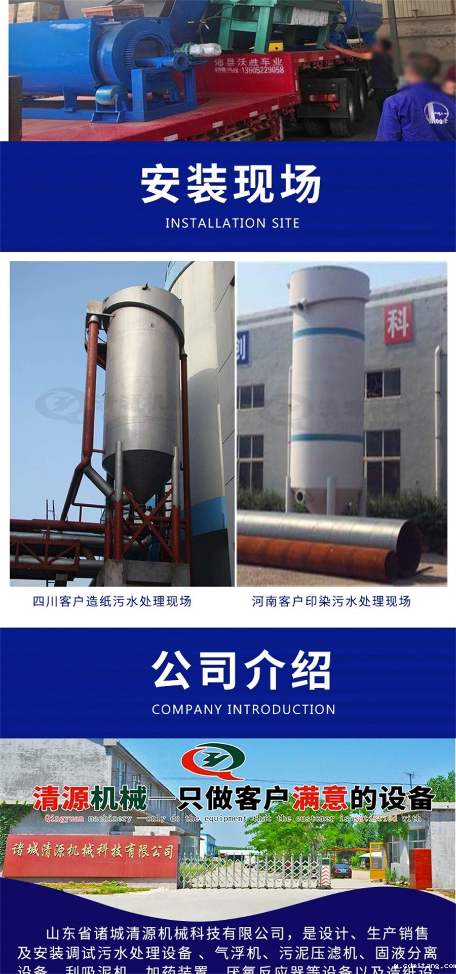 此外,我公司还生产超级溶气气浮机、污泥压滤机、刮吸泥机、造纸设备等其他环保设备。