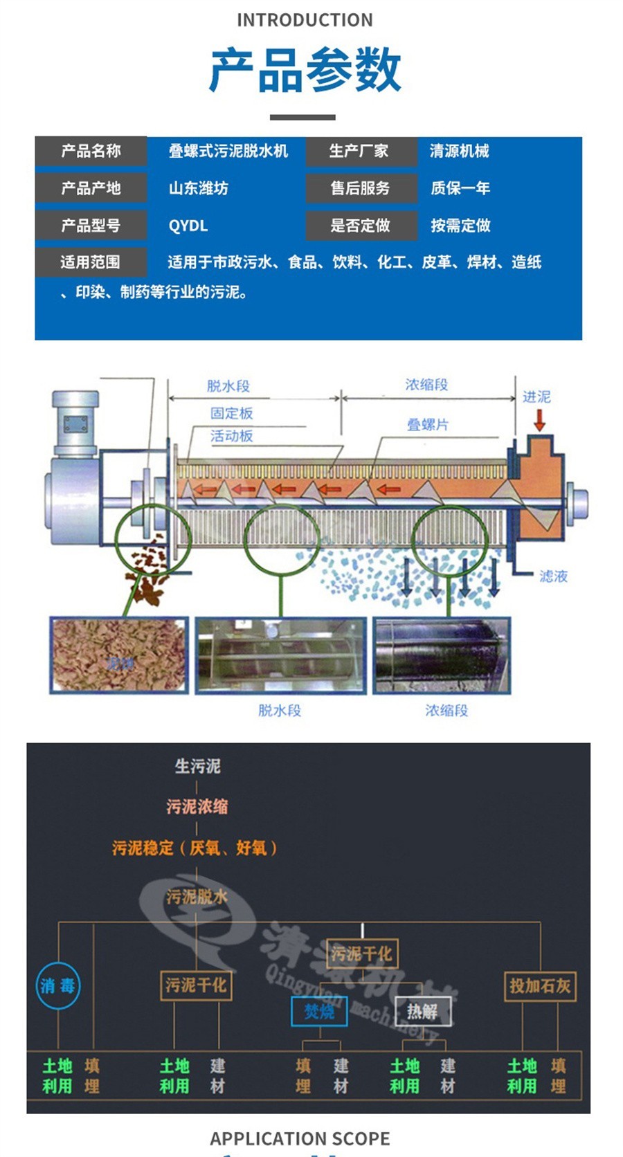 1、浓缩:当螺旋推动轴转动时,设在推动轴外围的多重固活叠片相对移动,在重力作用下,水从相对移动的叠片间隙中滤出,实现快速浓缩。