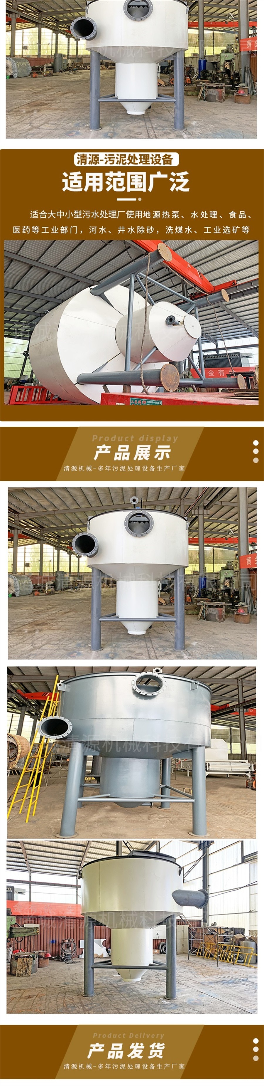 QYYXLC型号钟式旋流除砂机是一种新引进的国外技术,用于给排水工程中去除直径0.2mm以上的大部分砂粒,去除率98%以上。