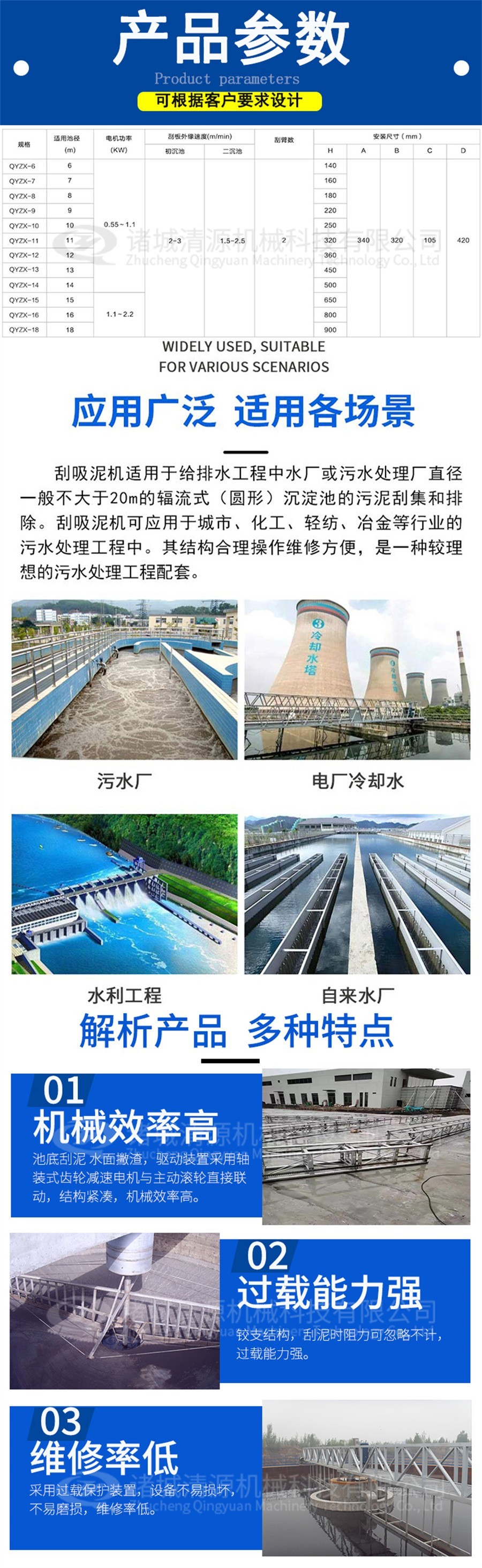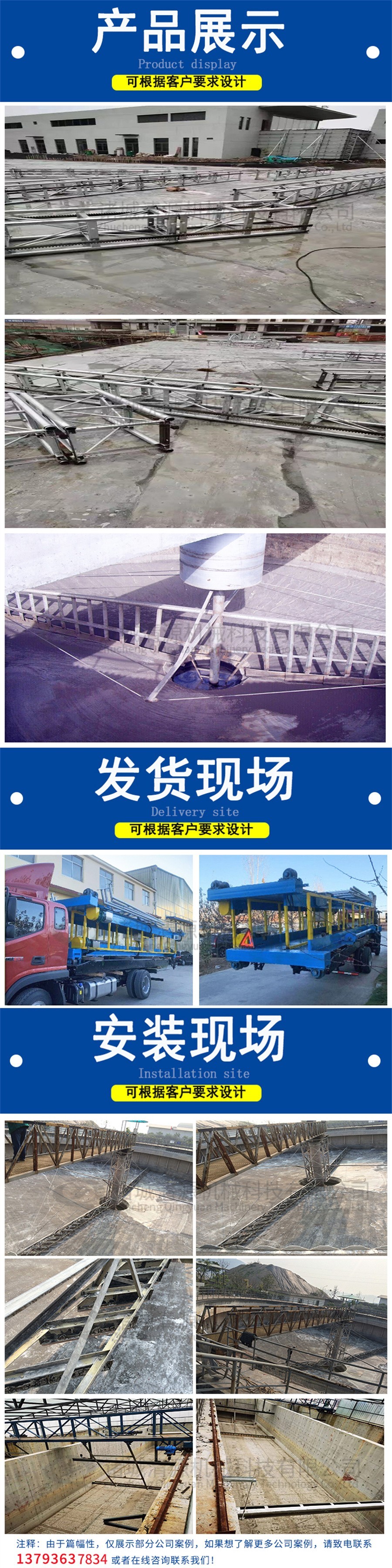 我公司除生产周边传动刮泥机外还生产中心传动刮泥机,行车式提耙刮泥机,污泥压滤机,污泥脱水一体化等其他污泥浓缩刮泥设备。