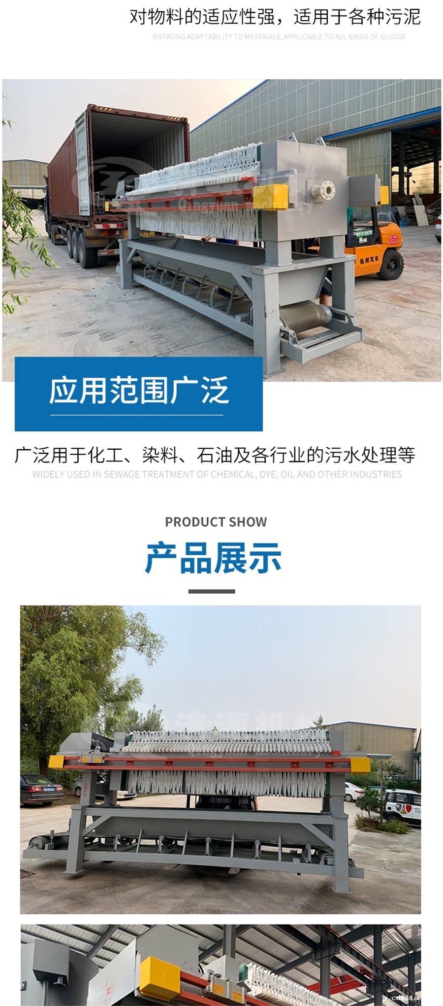 污泥变资源,污水变清泉,取代了厢式压滤机 当入料结束,可将高压流体介质注入隔膜板中,这时整张隔