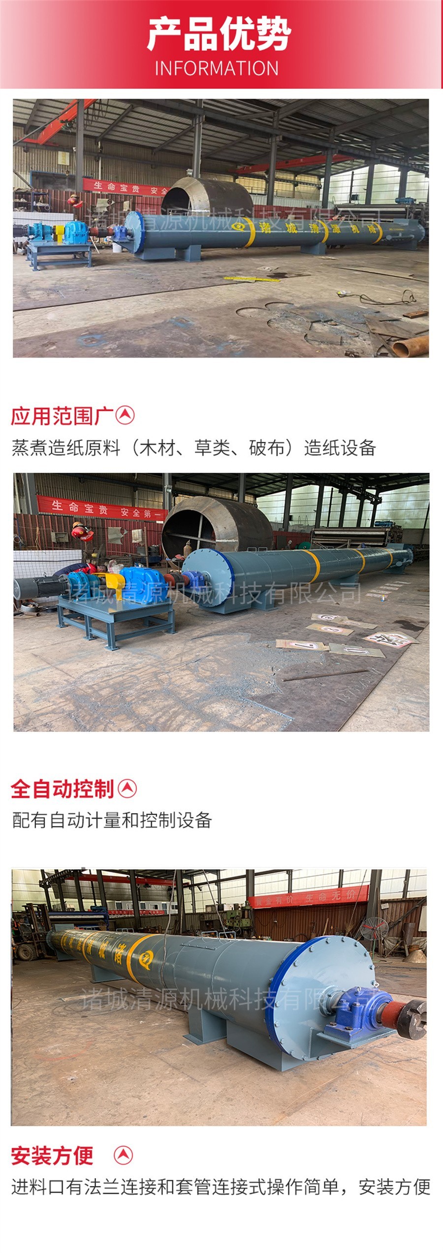 米兰app下载安卓版苹果版生产的螺旋蒸煮器用以蒸煮造纸原料(如木材、草类、破布等),使与蒸煮液起化学作用而得到主要为纤维素的纸浆。