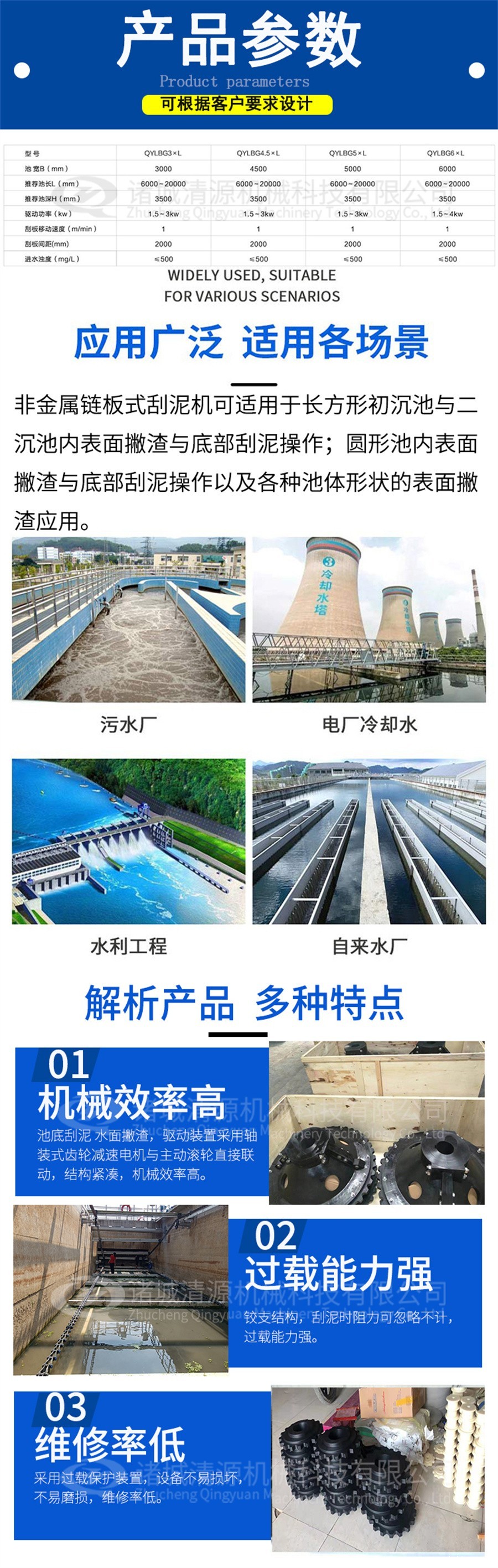 非金属链条式刮泥机的适用范围: