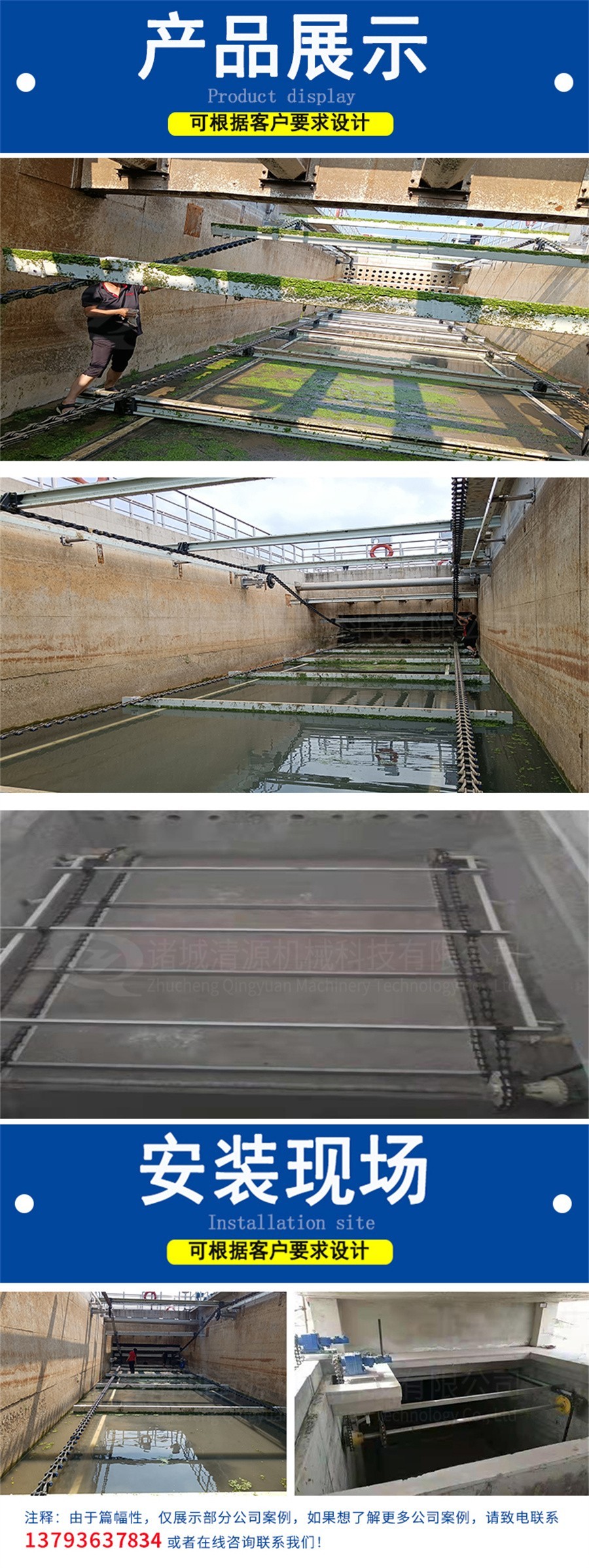 可适用于长方形初沉池与二沉池内表面撇渣与底部刮泥操作;圆形池内表面撇渣与底部刮泥操作以及各种池体形状的表面撇渣应用。