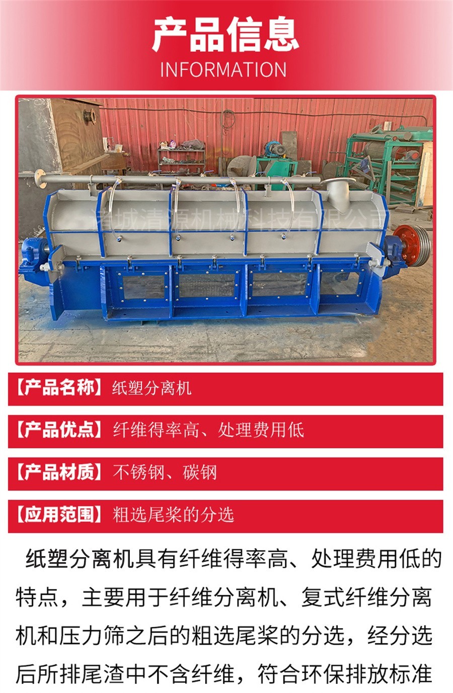 诸城米兰下载直播app生产的纸塑分离机包括一焊接的组装主体,主体支撑着筛板、转子、收集槽、渣滓排放槽和支架,它是水平安装的。